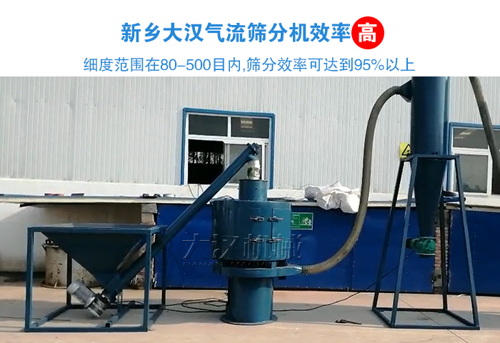 大漢氣流篩分機可對細度范圍在80-500目內的粉狀物料很好的連續(xù)篩分,其篩網(wǎng)受旋風沖刷,可自行進行清網(wǎng),篩分效率可達到95%以上,產(chǎn)量是普通振動篩的5-10倍或更高。